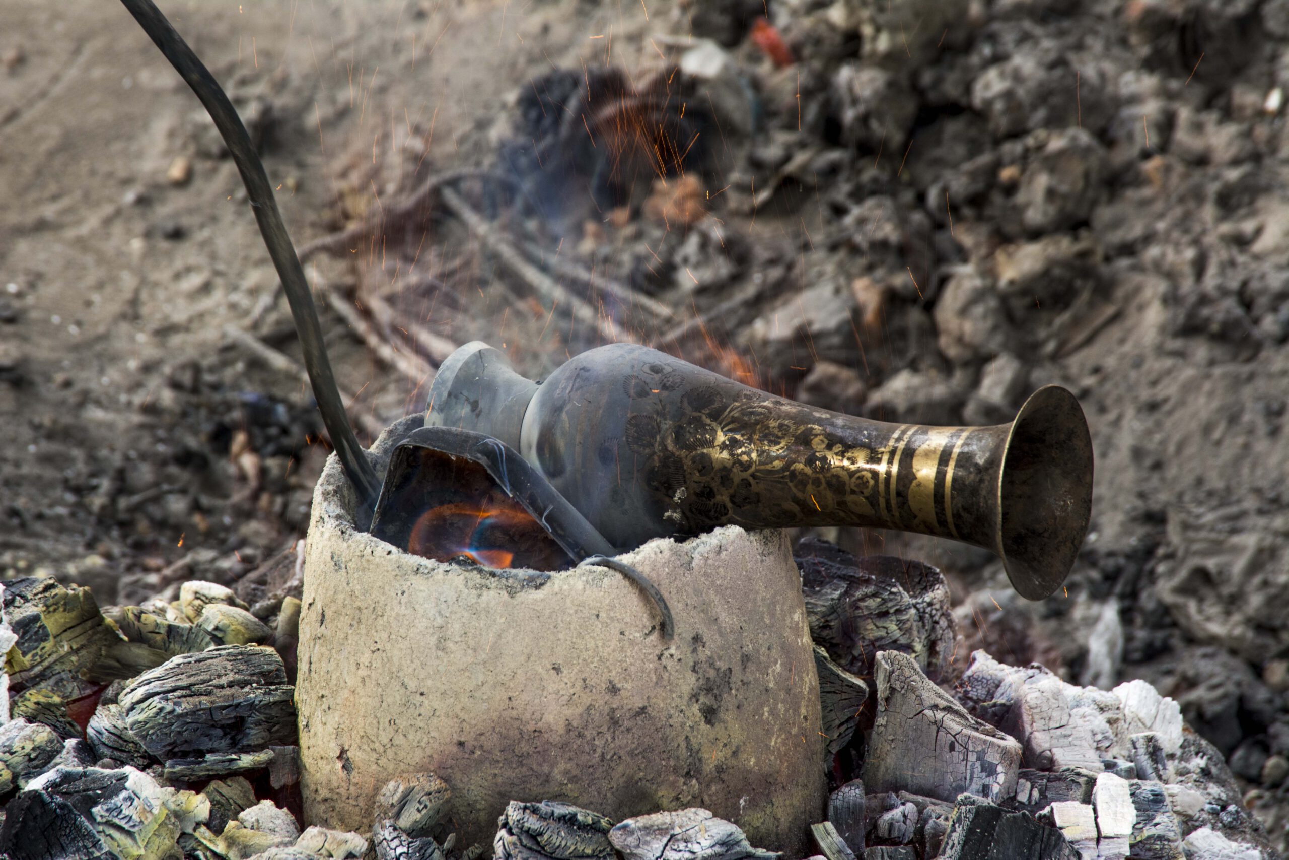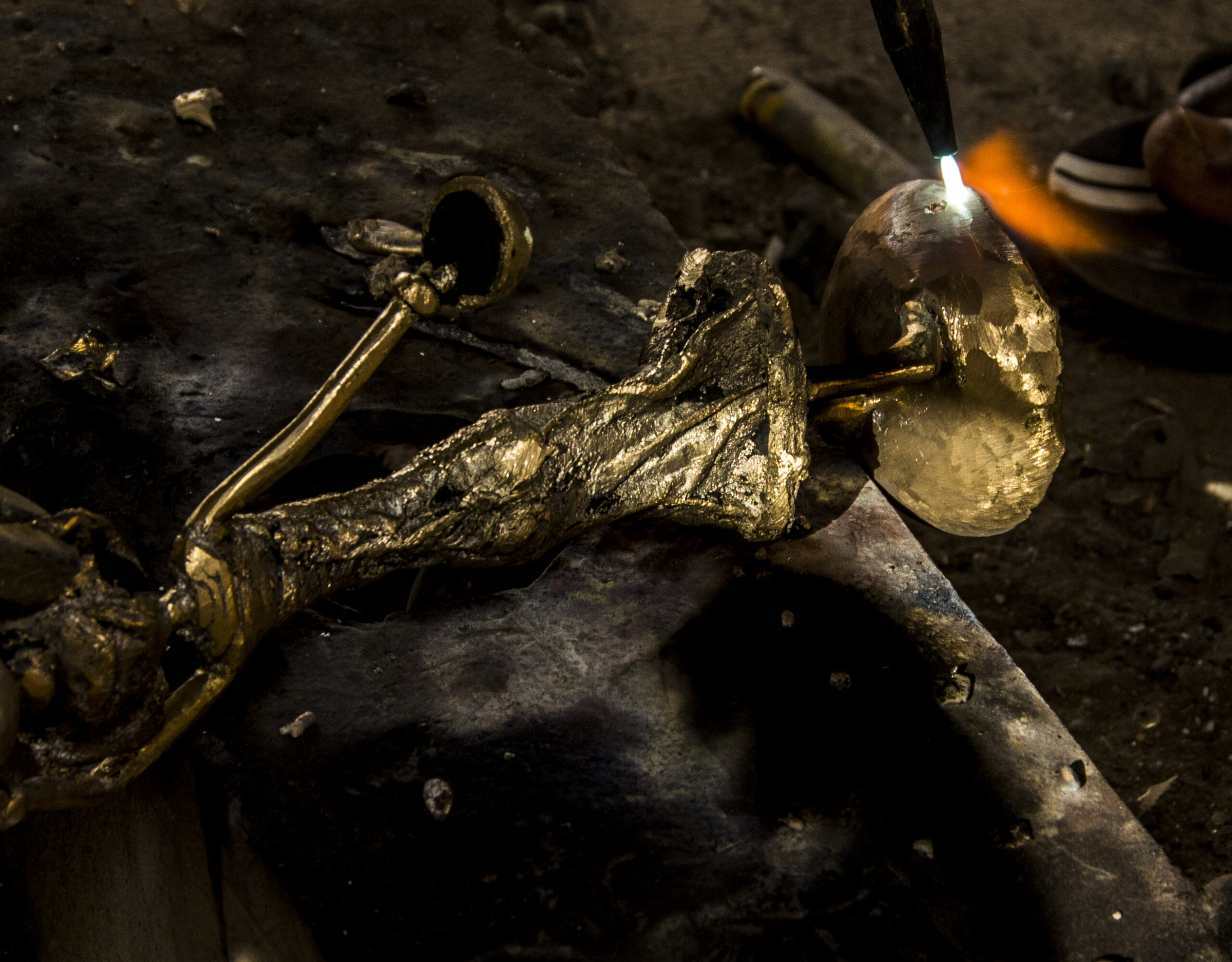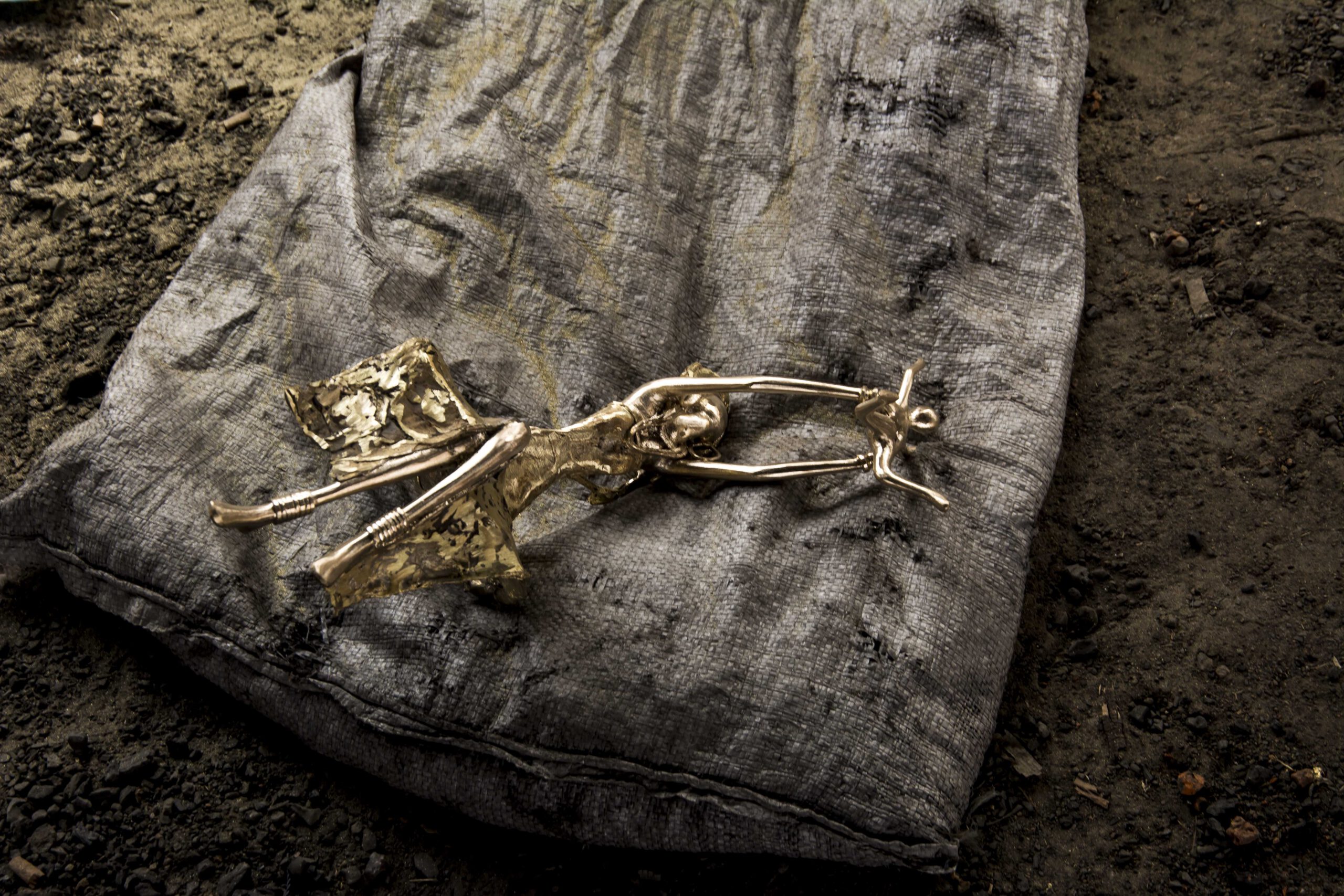Nachdem die Bronze abgekühlt ist, muss die Lehmform zerschlagen werden um an die Figur zu gelangen. Daher kommt der Name „die Kunst der verlorenen Form“, und deshalb sind auch alle Figuren Unikate.